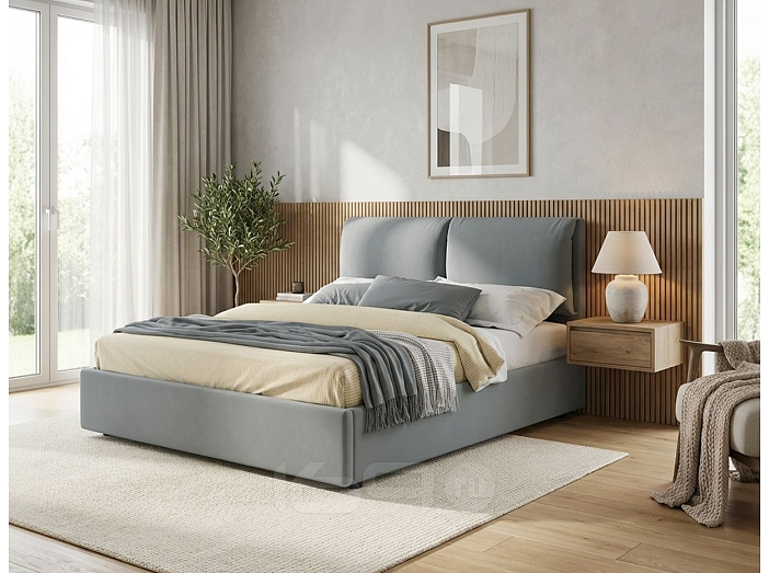 Кровать Vita велюр серая с подъемным механизмом 1600x2000, ортопедическое основание, изголовье мягкое