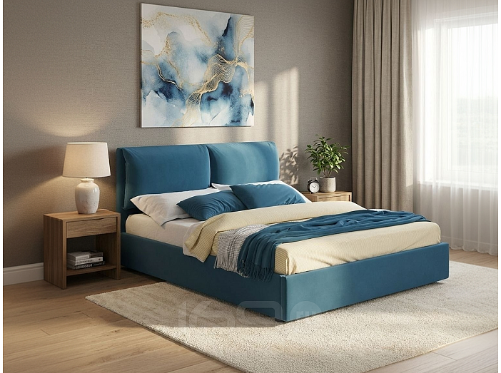 Кровать Vita велюр синий без подъёмного механизма 1600x2000, изголовье мягкое