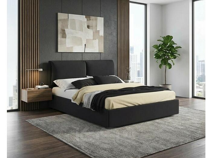 Кровать Vita велюр черный с подъемным механизмом 1600x2000, ортопедическое основание, изголовье мягкое