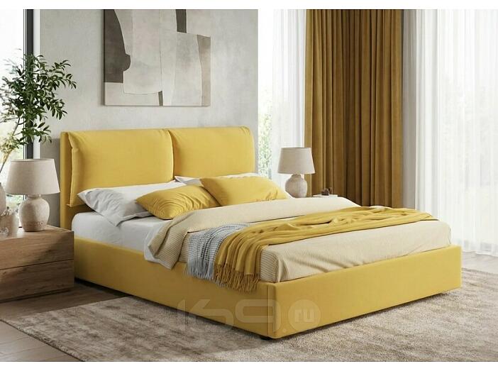 Кровать Vita велюр желтый с подъемным механизмом 1600x2000, ортопедическое основание, изголовье мягкое