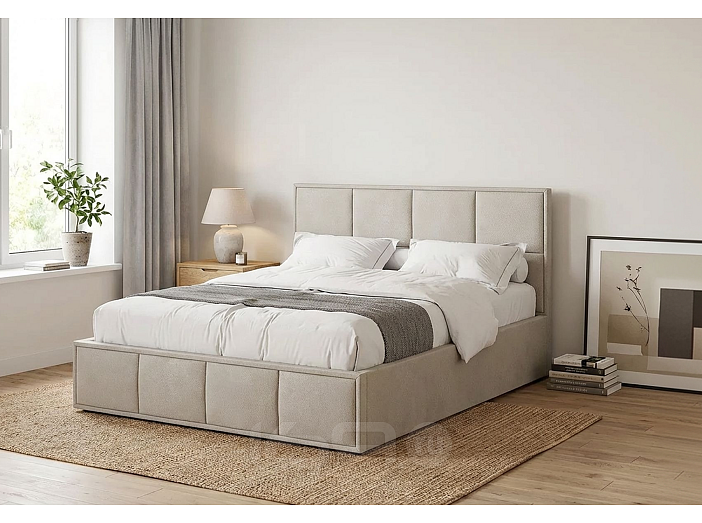 Кровать Октавия велюр бежевый без подъёмного механизма 1400x2000, без ортопедического основания, изголовье мягкое