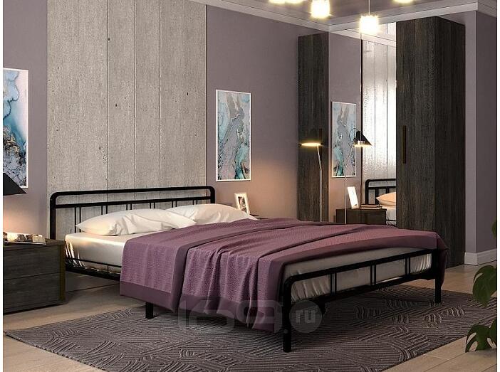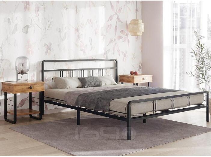 Кровать Рейк без обивки черный без подъёмного механизма 1600x2000, ортопедическое основание, изголовье жесткое