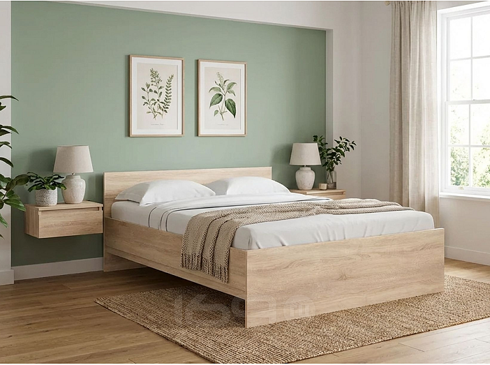 Кровать STERN без обивки дуб сонома без подъёмного механизма 1400x2000, без ортопедического основания, изголовье жесткое