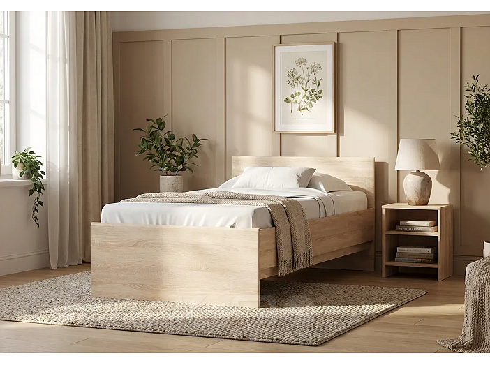 Кровать STERN без обивки дуб сонома без подъёмного механизма 900x2000, без ортопедического основания, изголовье жесткое