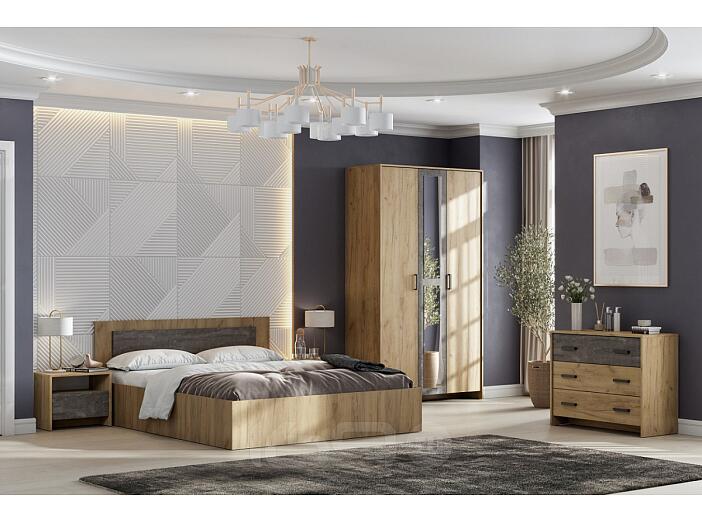 Кровать Taika дуб золотой/камень темный 160x200 см, жесткое изголовье