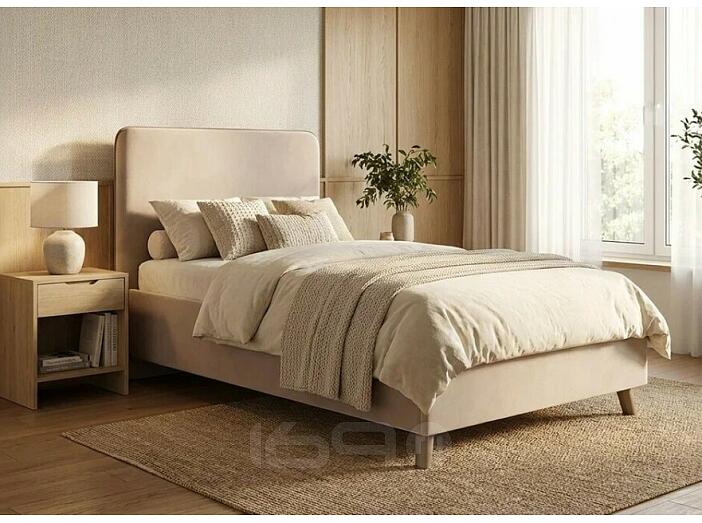 Кровать Ванесса велюр бежевый без подъёмного механизма 800x2000, щит-основание, изголовье мягкое