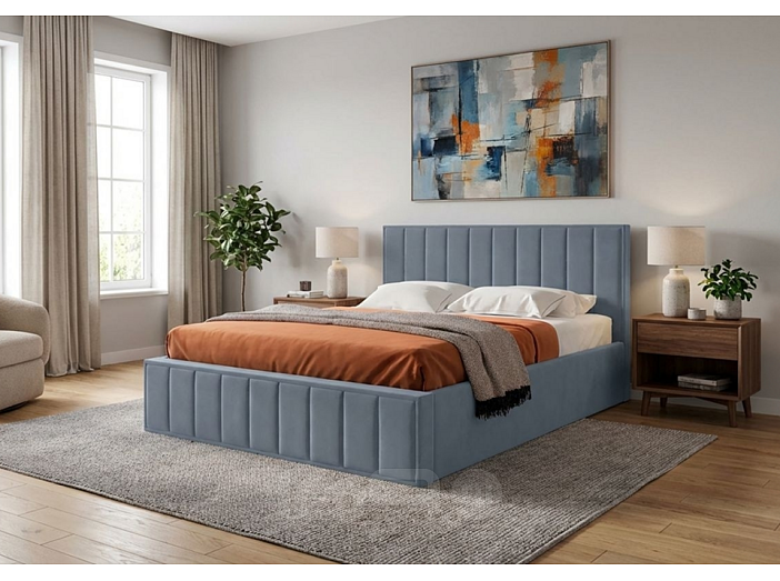 Кровать в мягкой обивке “Женева” является воплощением элегантной изысканности.
