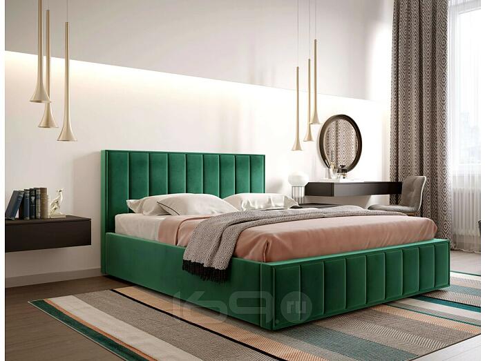 Кровать Женева велюр мора зеленый без подъёмного механизма 1600x2000, без ортопедического основания, изголовье мягкое