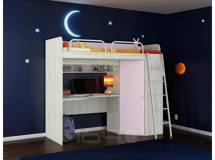 Кровать Тетрис без обивки дуб белый craft, лаванда 800x2000, изголовье жесткое