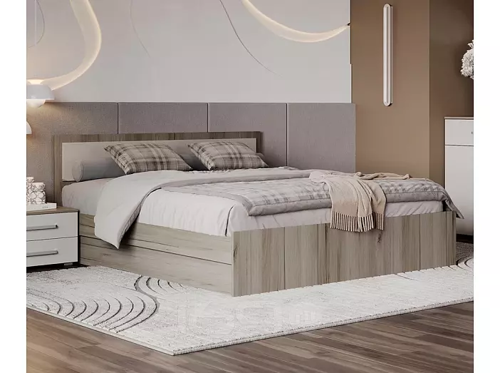 Кровать Фиеста без обивки кашемир/дуб крафт серый без П/М 1400x2000, изголовье жесткое