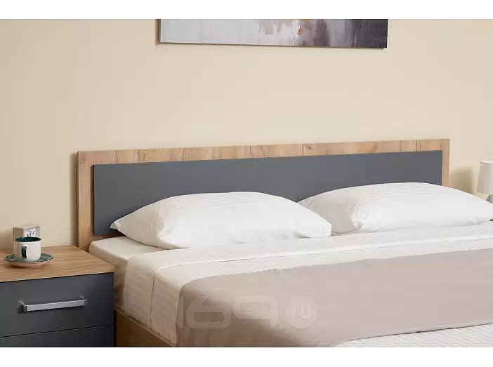 Кровать Мартина без обивки графит/дуб крафт без подъёмного механизма 1600x2000, без ортопедического основания, изголовье жесткое