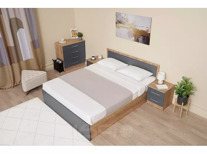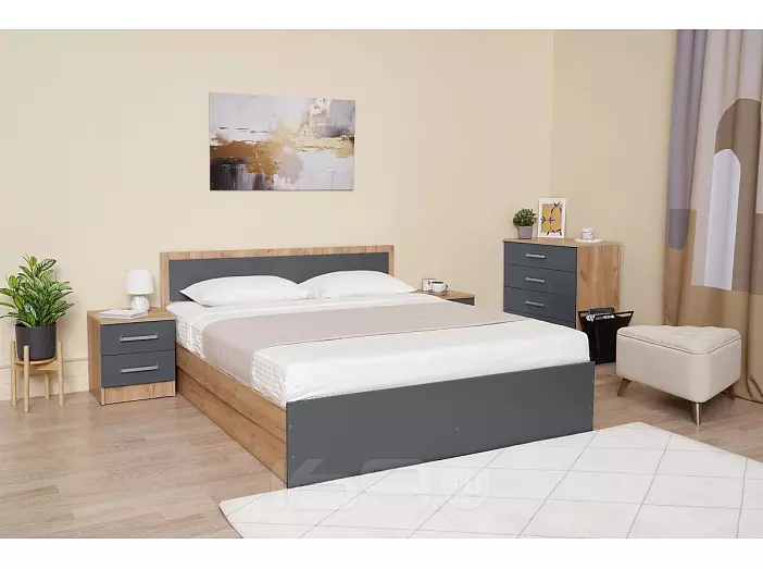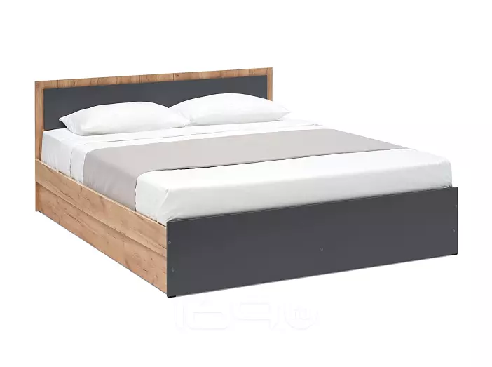 Кровать Мартина без обивки графит/дуб крафт без подъёмного механизма 1600x2000, без ортопедического основания, изголовье жесткое