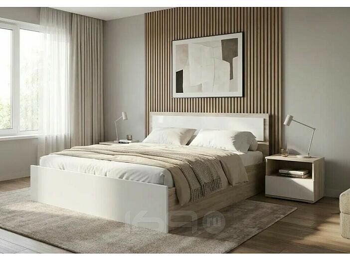 Кровать Мартина без обивки белый глянец/дуб сонома С П/М 1400x2000, изголовье жесткое