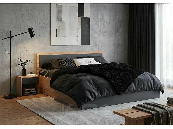 Кровать Мартина без обивки графит/дуб крафт С П/М 1400x2000, изголовье жесткое