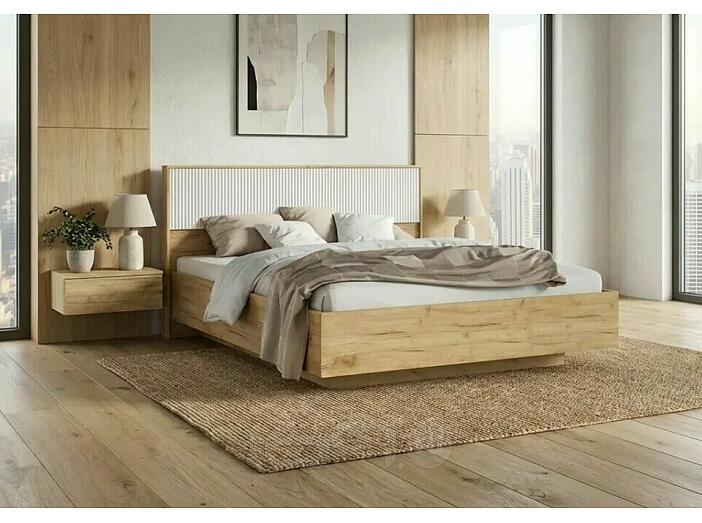 Кровать Марвэл без обивки браш вайт/дуб крафт без П/М 1600x2000, изголовье жесткое