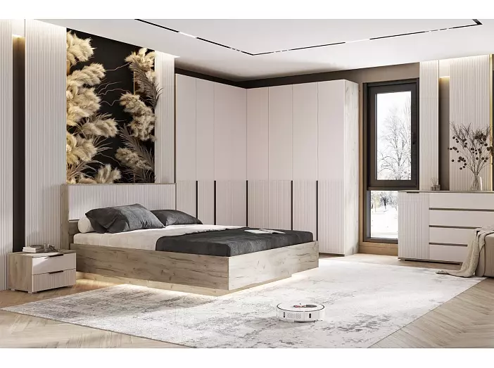 Кровать Марвэл без обивки кашемир/дуб крафт серый без подъёмного механизма 1600x2000, изголовье жесткое