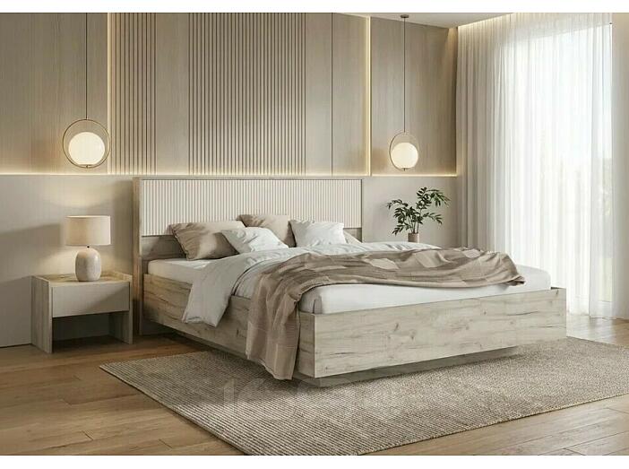Кровать Марвэл без обивки кашемир/дуб крафт серый без П/М 1600x2000, изголовье жесткое