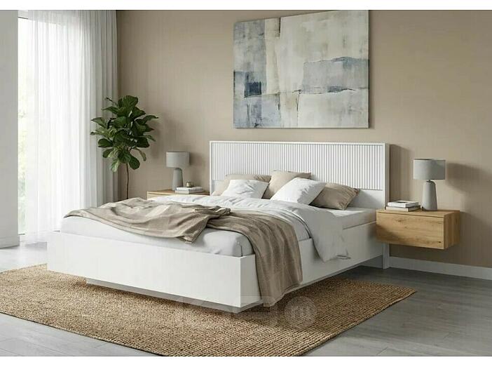 Кровать Марвэл с подсветкой без обивки браш вайт/белый без П/М 1600x2000, изголовье жесткое