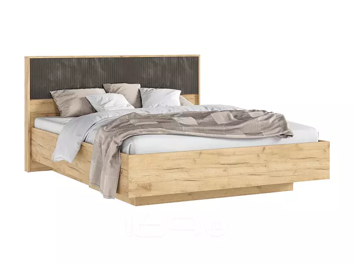 Кровать Марвэл без обивки мальта грей/дуб крафт без подъёмного механизма 1600x2000, изголовье жесткое