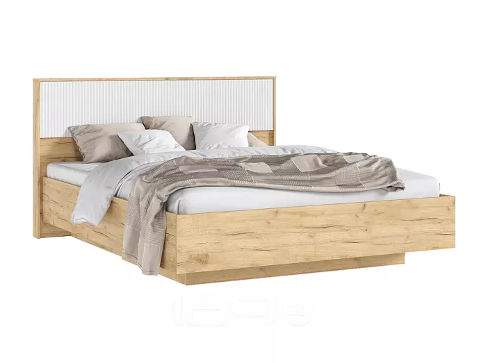 Кровать Марвэл без обивки браш вайт/дуб крафт с подъемным механизмом 1600x2000, изголовье жесткое