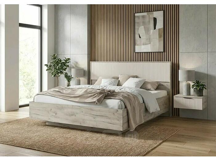 Кровать Марвэл без обивки кашемир/дуб крафт серый С П/М 1600x2000, изголовье жесткое