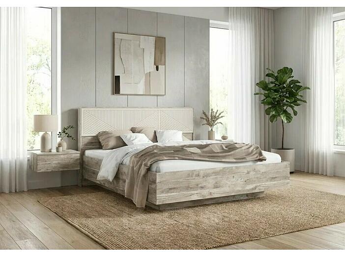 Кровать Сильвия без обивки кашемир/дуб юкон без П/М 1600x2000, изголовье жесткое