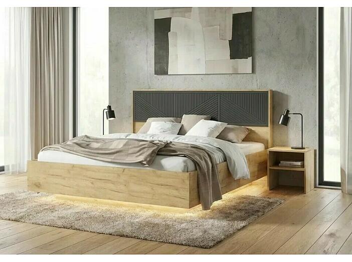 Кровать Сильвия с подсветкой без обивки браш графит/дуб крафт без П/М 1600x2000, изголовье жесткое