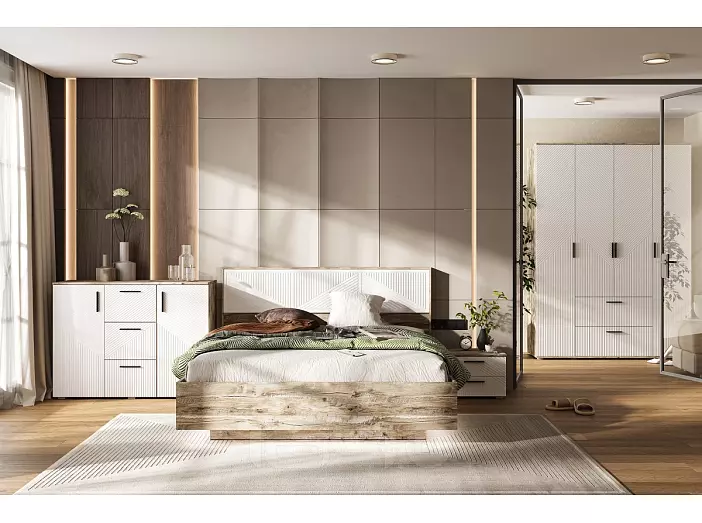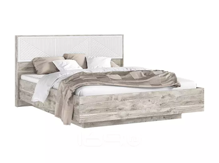 Кровать Сильвия без обивки браш вайт/дуб юкон без подъёмного механизма 1600x2000, изголовье жесткое
