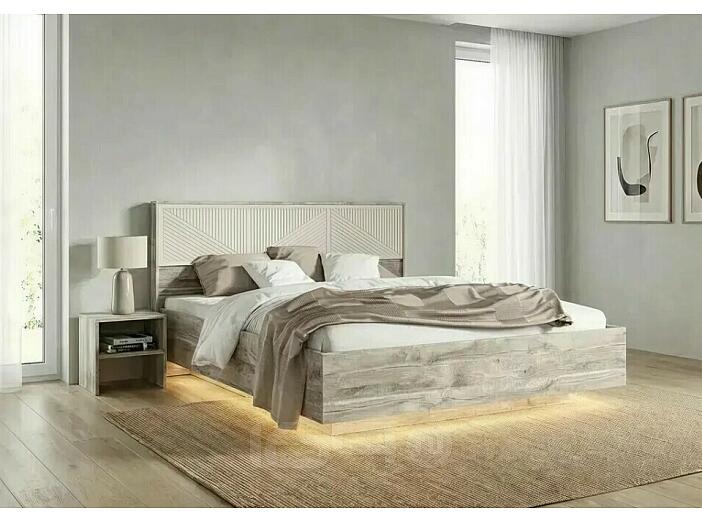 Кровать Сильвия с подсветкой без обивки кашемир/дуб юкон без П/М 1600x2000, изголовье жесткое