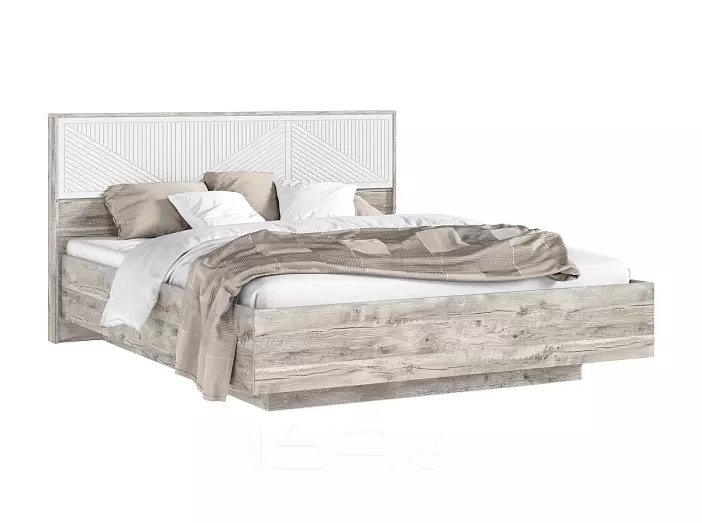 Кровать Сильвия без обивки браш вайт/дуб юкон с подъемным механизмом 1600x2000, изголовье жесткое