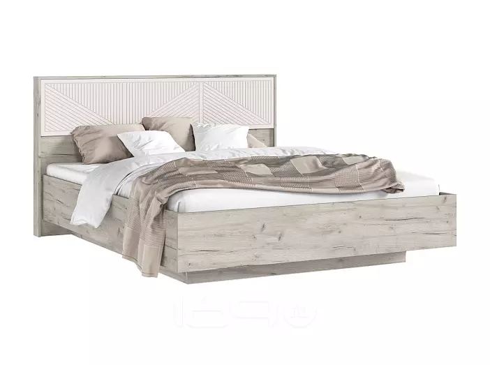 Кровать Сильвия без обивки кашемир/дуб крафт серый с подъемным механизмом 1600x2000, изголовье жесткое