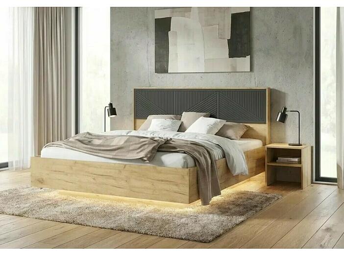 Кровать Сильвия с подсветкой без обивки браш графит/дуб крафт С П/М 1600x2000, изголовье жесткое