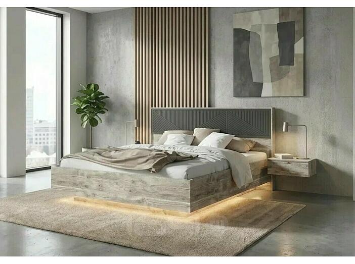 Кровать Сильвия с подсветкой без обивки браш графит/дуб юкон С П/М 1600x2000, изголовье жесткое