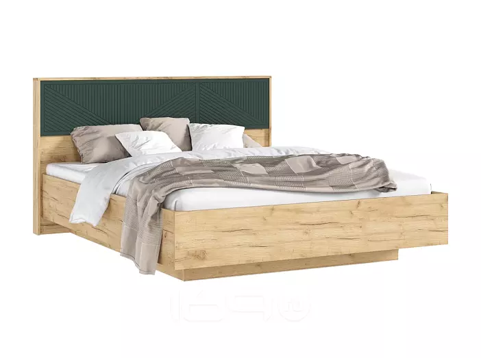 Кровать Сильвия без обивки браш мени грин/дуб крафт с подъемным механизмом 1600x2000, изголовье жесткое