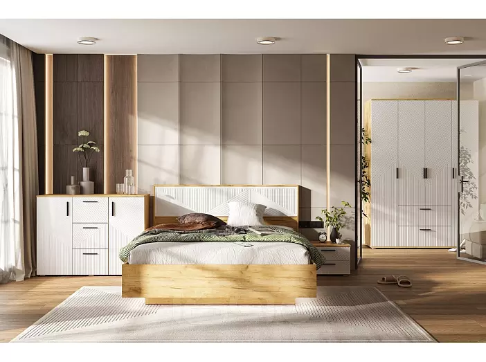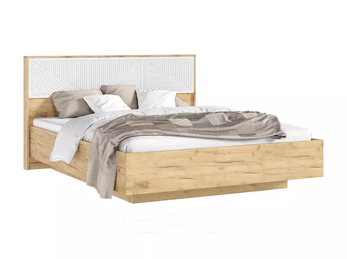 Кровать Сильвия без обивки браш вайт/дуб крафт с подъемным механизмом 1600x2000, изголовье жесткое