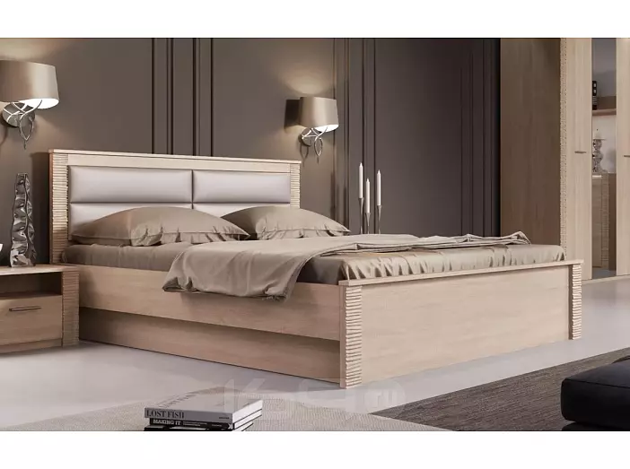 Кровать Элана экокожа дуб сонома 180x200 см, мягкое изголовье