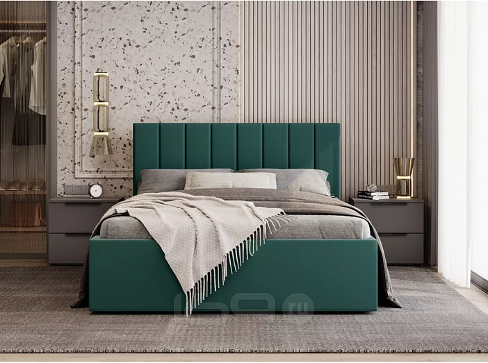 Кровать Аврора велюр velutto 33 зеленый С П/М 1400x2000, изголовье мягкое