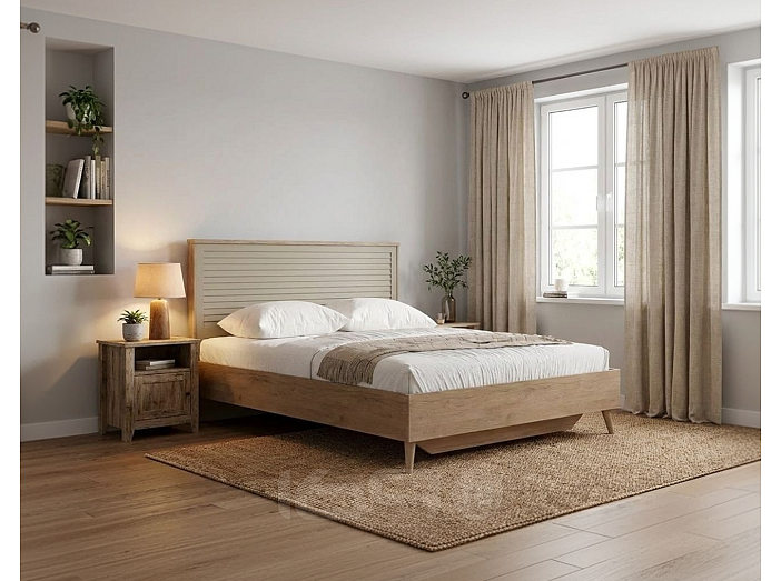 Кровать Гавана без обивки дуб натуральный светлый/светло-серый софт без подъёмного механизма 1600x2000, изголовье жесткое