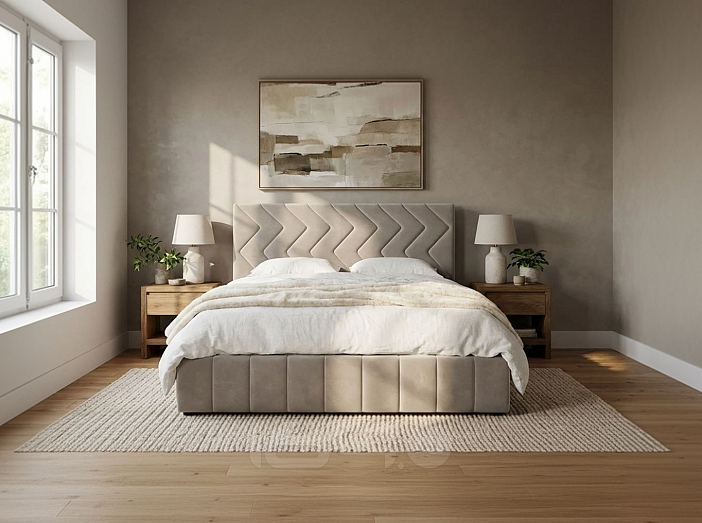 Кровать Милана велюр кварцевый без подъёмного механизма 1600x2000, без ортопедического основания, изголовье мягкое