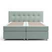 Мягкая двуспальная кровать Николетт популярного сейчас мятного цвета – идеальное решение для спальни, оформленной в нежных пастельных тонах. Никого не оставит равнодушным изящный, практичный и приятный на ощупь материал обивки - велюр, а также продуманная эргономика и современный дизайн кровати. Еще одна дизайнерская уловка – это мягкое изголовье, украшенное кантом из экокожи молочного цвета, который слегка подчеркивает контур кровати, не нарушая при этом общую цветовую гармонию. Помимо эстетического наслаждения кровать Box Spring (Бокс Спринг) Николетт подарит своим обладателям ряд функциональных преимуществ. Во-первых, кровать укомплектована матрасом с зависимым пружинным блоком Боннель, состоящим из двух половинок. Эта конструкторская задумка позволяет сохранить комфортный сон для обоих партнеров даже с разной весовой категорией. Полностью исключается эффект скатывания в середину, который иногда можно наблюдать при использовании блока зависимых пружин. Во-вторых, кровать Николетт легко собирается даже без помощи отвертки. А благодаря тому, что основание кровати так же как и матрас состоит из двух частей, транспортировка изделия становится еще проще, ведь в разложенном виде оно пройдет в любой дверной проем. Высота сиденья от пола - 50 см. Размеры изголовья – 180 х 100 см. Подъемный механизм и ящик для белья не предусмотрены. Ознакомьтесь со всем ассортиментом кроватей из серии Николетт для того, чтобы выбрать ту модель, которая подойдет именно вам!