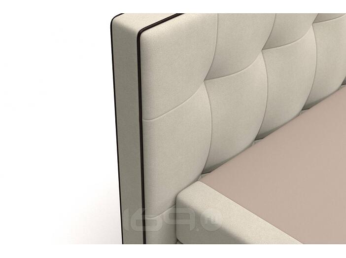 Кровать Мика велюр бежевый 160x200 см, ортопедическое основание, мягкое изголовье