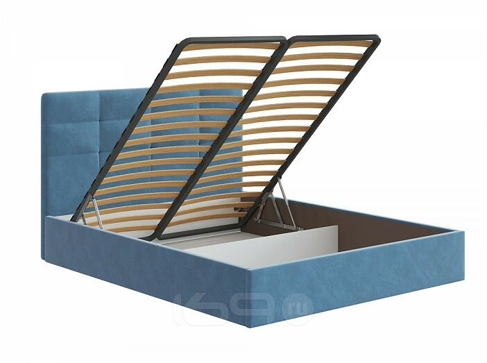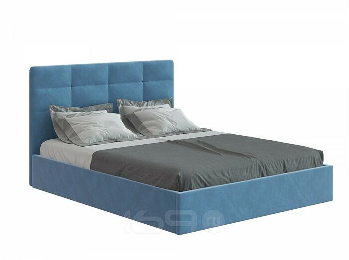 Кровать Соната велюр синий 180x200 см, мягкое изголовье