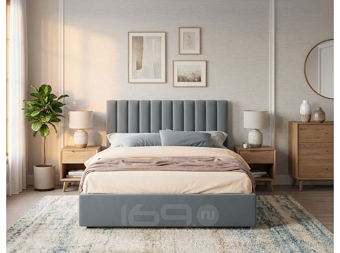 Кровать Olivia велюр серый без подъёмного механизма 1400x2000, изголовье мягкое