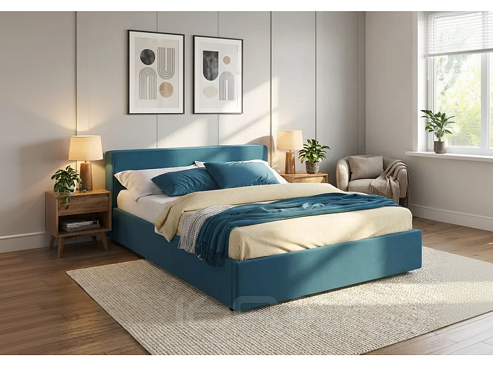 Кровать Skandi велюр синий с подъемным механизмом 1600x2000, ортопедическое основание, изголовье мягкое