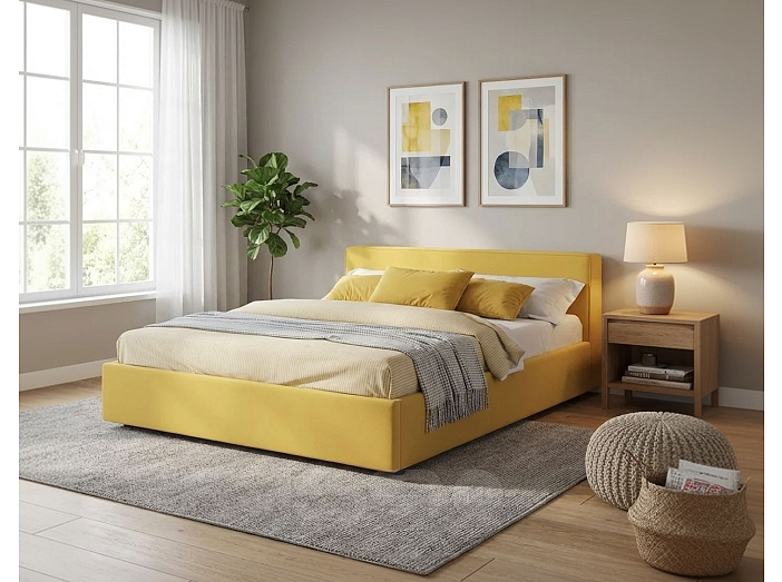 Кровать Skandi велюр желтый с подъемным механизмом 1600x2000, ортопедическое основание, изголовье мягкое