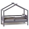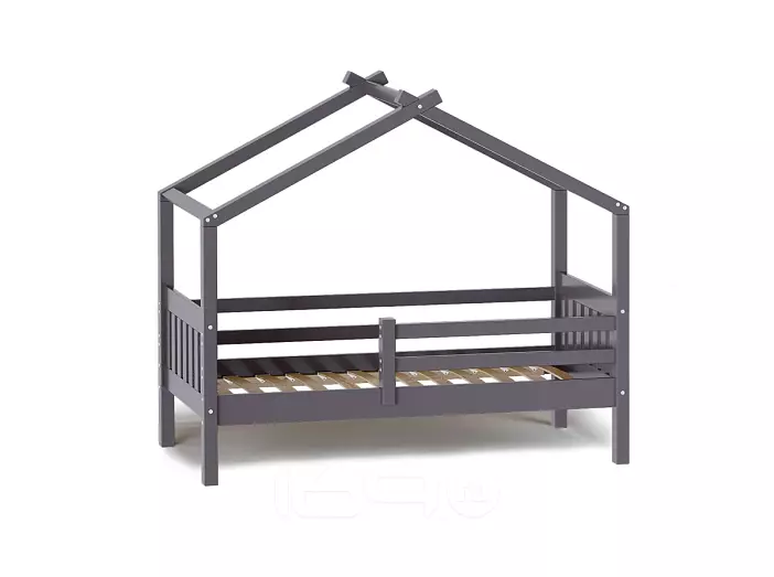 Каркас укомплектован основанием из поперечных гнутых ламелей. Головная и ножная спинки соединены стропилами, образующими крышу, благодаря чему малыш будет ощущать себя в собственном уютном домике. В комплектацию кровати входит ортопедическое основание из гнутоклееных ламелей.