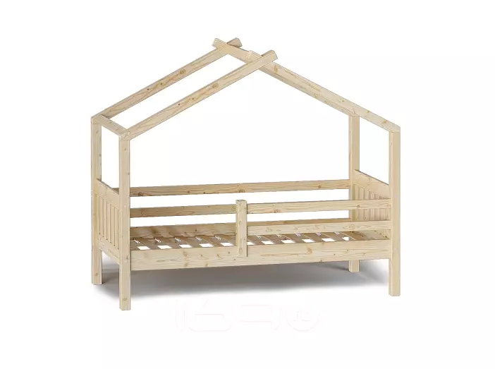 Каркас укомплектован основанием из поперечных гнутых ламелей. Головная и ножная спинки соединены стропилами, образующими крышу, благодаря чему малыш будет ощущать себя в собственном уютном домике. В комплектацию кровати входит ортопедическое основание из гнутоклееных ламелей.