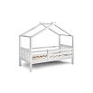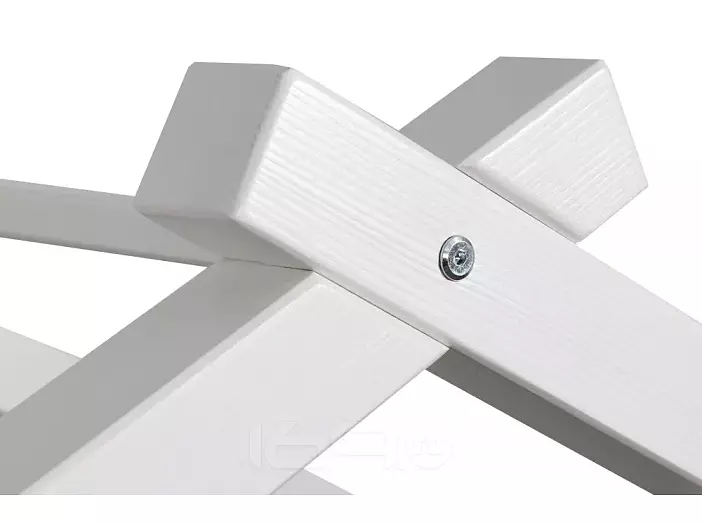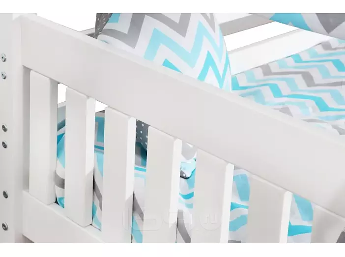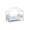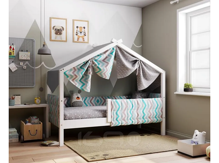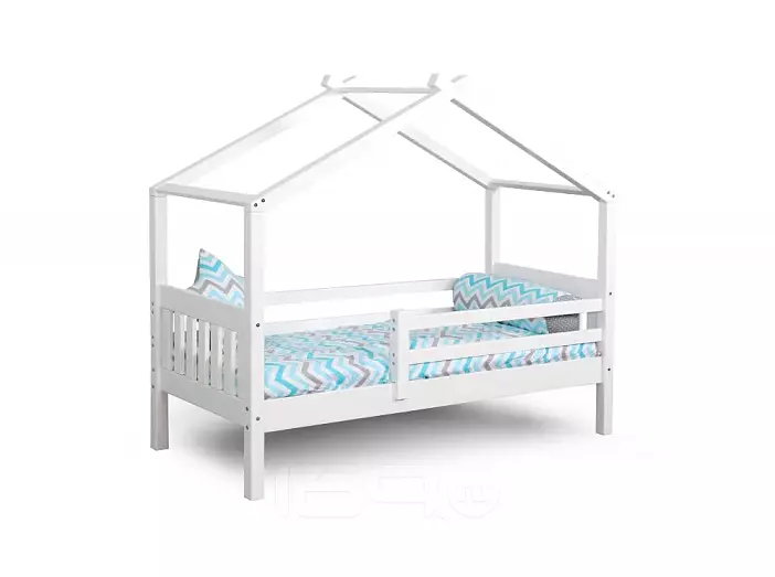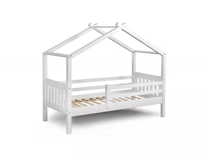 Каркас укомплектован основанием из поперечных гнутых ламелей. Головная и ножная спинки соединены стропилами, образующими крышу: если дополнить кроватку текстильными аксессуарами в виде балдахина и мягких бортиков, малыш будет ощущать себя в собственном уютном домике. В комплектацию кровати входит ортопедическое основание из гнутоклееных ламелей.