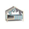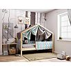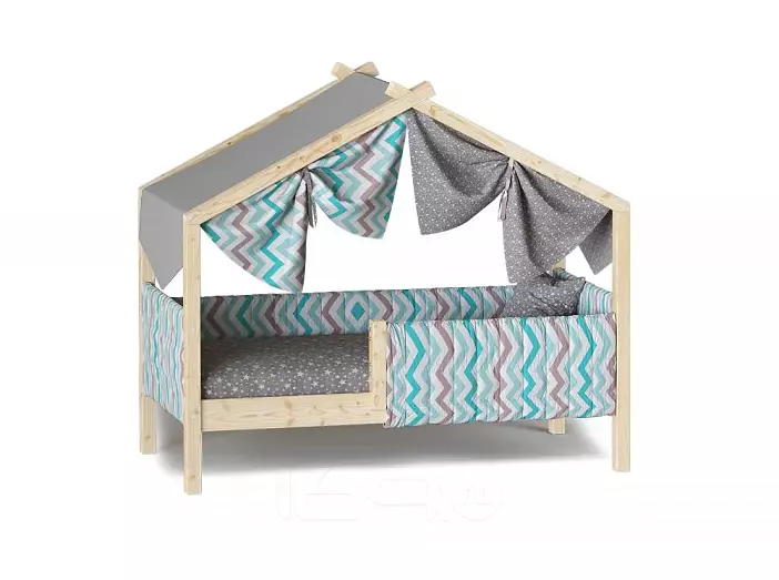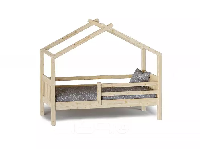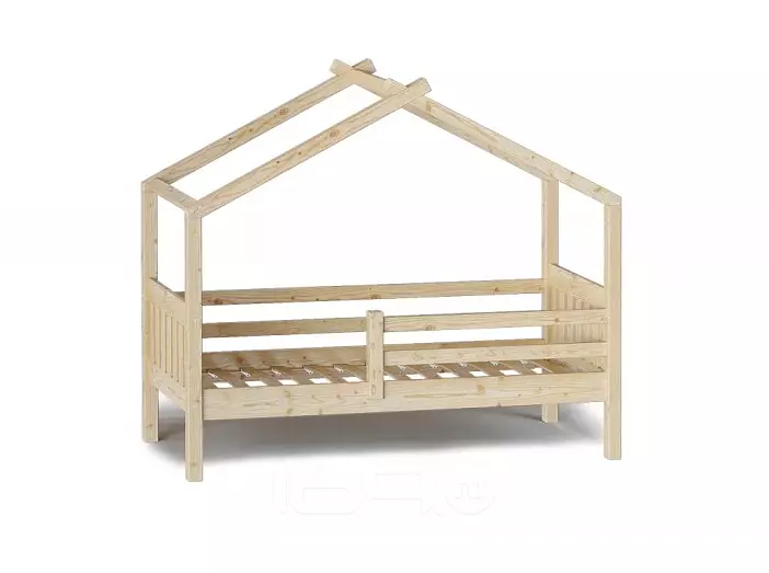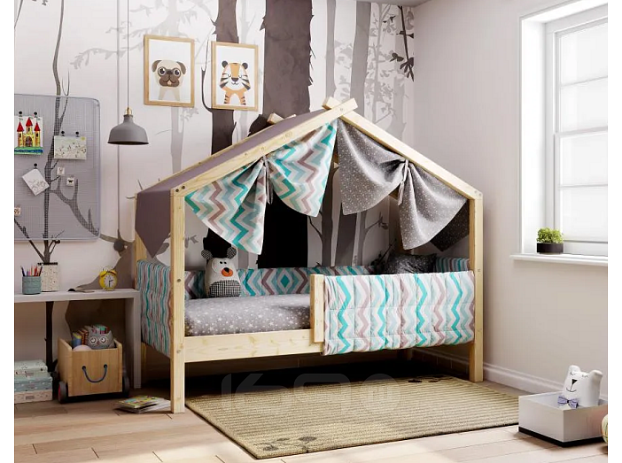 Каркас укомплектован основанием из поперечных гнутых ламелей. Головная и ножная спинки соединены стропилами, образующими крышу: если дополнить кроватку текстильными аксессуарами в виде балдахина и мягких бортиков, малыш будет ощущать себя в собственном уютном домике. В комплектацию кровати входит ортопедическое основание из гнутоклееных ламелей.