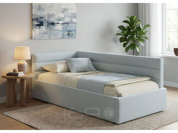 Мягкая односпальная кровать-тахта Aura (Аура) c подъемным ортопедическим основанием и спальным местом 90*200 – уникальный предмет мебели, который совмещает в себе полноценную кровать и диван. Тахта с двумя мягкими спинками выполнена из модной мебельной ткани – велюр. Ткань износостойкая, легко чистится от загрязнений (влажной тряпочкой, любыми средствами, кроме средств с растворителями), практичная, эластичная, устойчивая к ультрафиолету._x000D_
